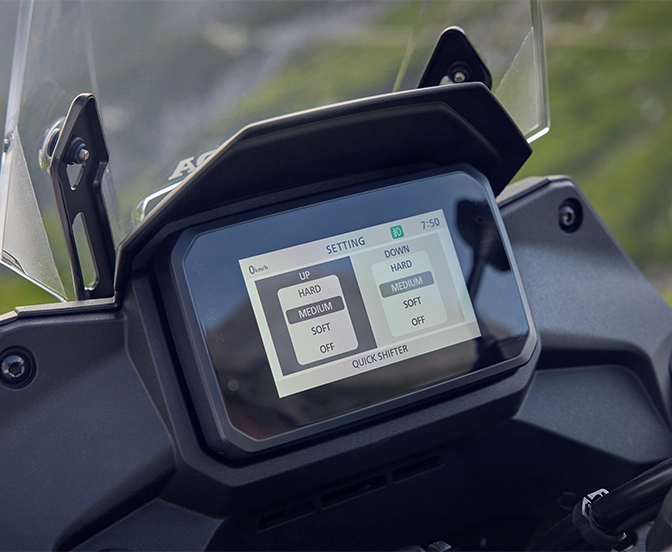 O novo modelo apresenta display TFT colorido de 5’’, que projeta informações de maneira clara e intuitiva, com iluminação que se adapta automaticamente á iluminação do ambiente, sem comprometer a concentração durante a pilotagem, garantindo segurança em qualquer terreno.